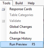 - Select Tools|Run Preview from the menu bar or the F5 key. Note: the Tools|Run Preview menu item is only enabled if the highlighted section contains at least one Data or Information Element in the list view window.