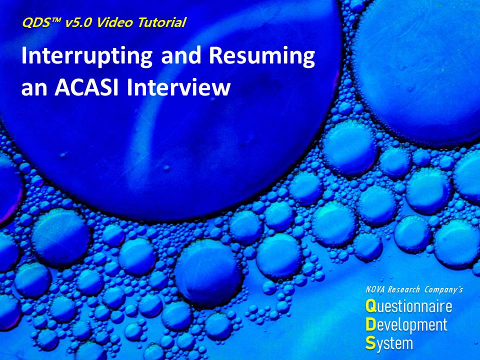 QDS ACASI: Interrupting and Resuming an ACASI Interview