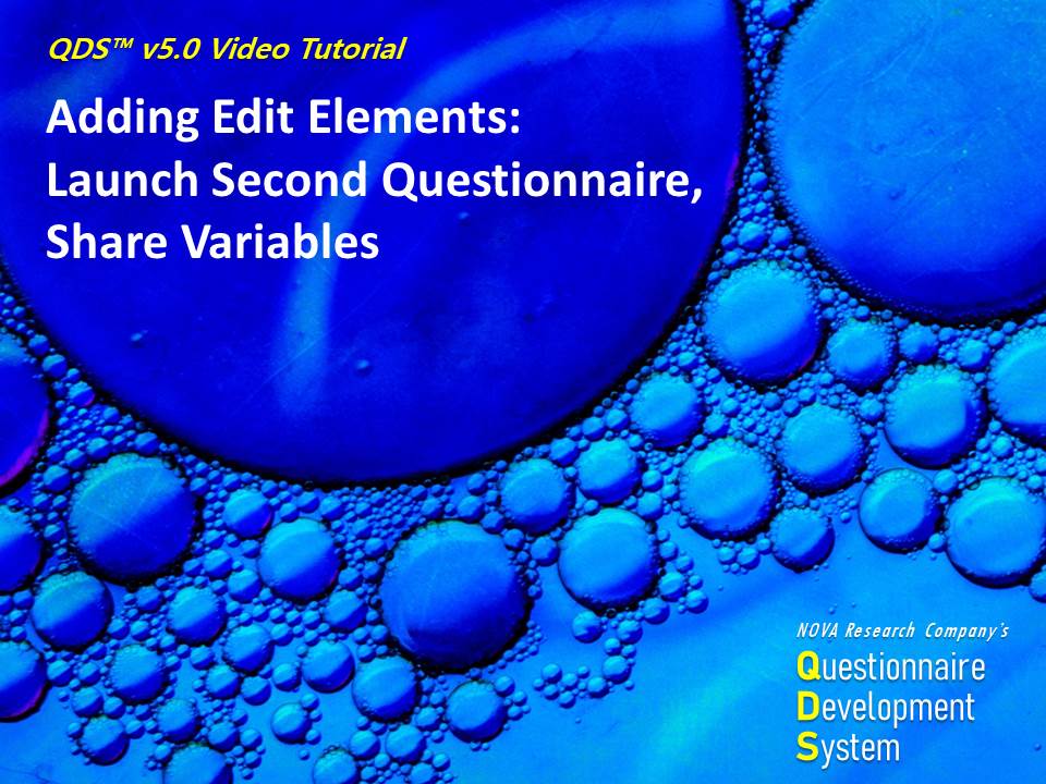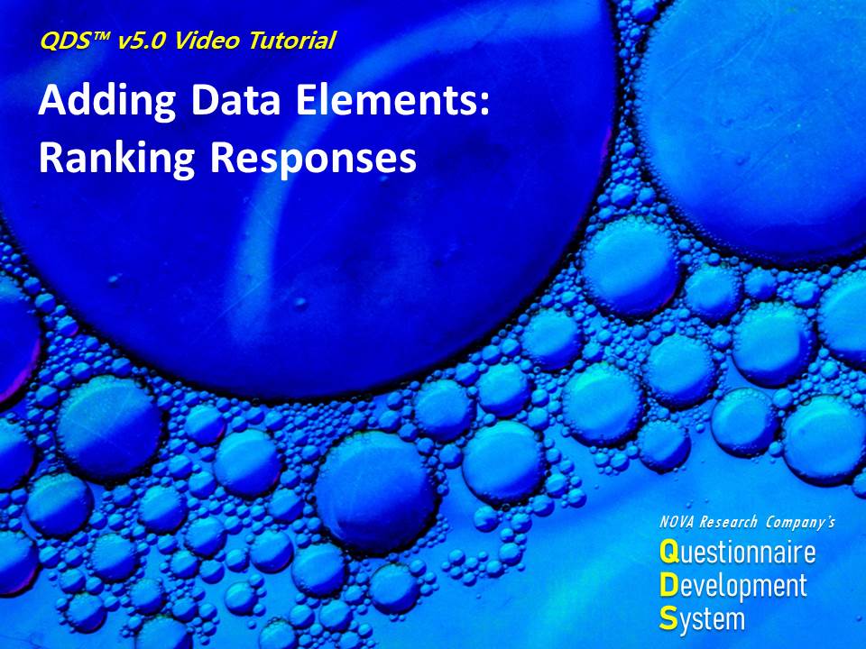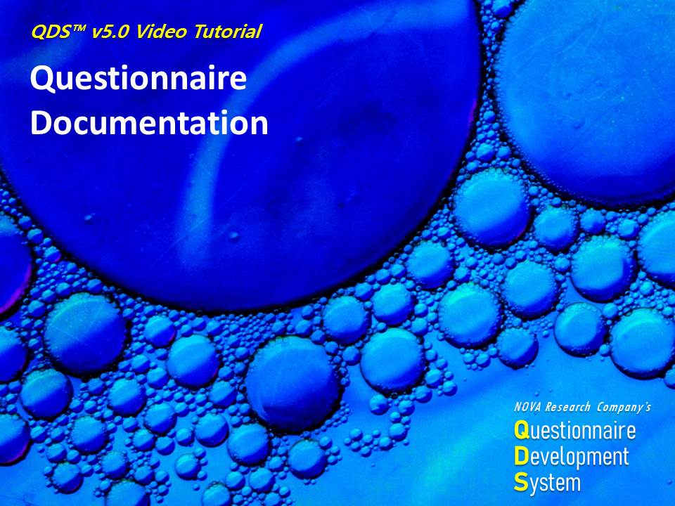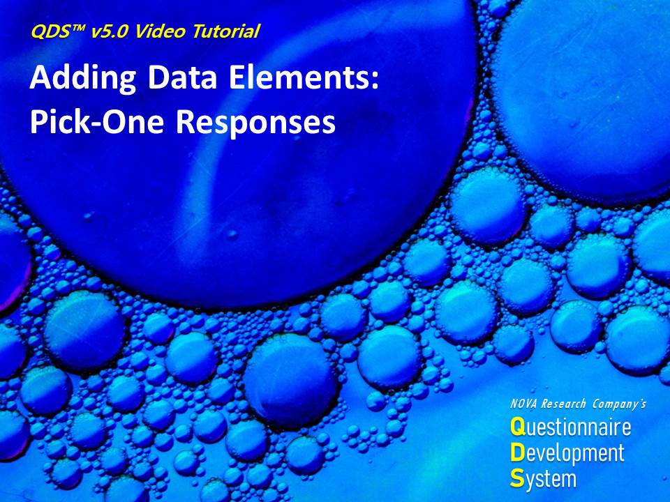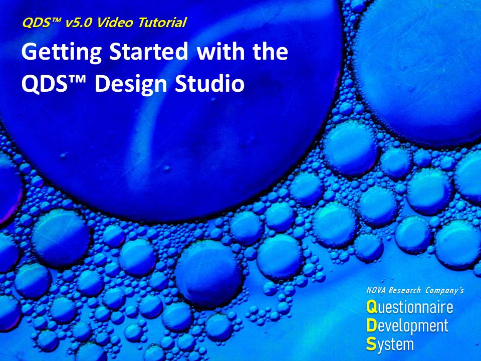 This video is part of a training series on using NOVA Research Company's Questionnaire Development System (QDS™) software for designing and administering a survey. This video demonstrates getting started with QDS and adding a subject identifier in the QDS Design Studio.