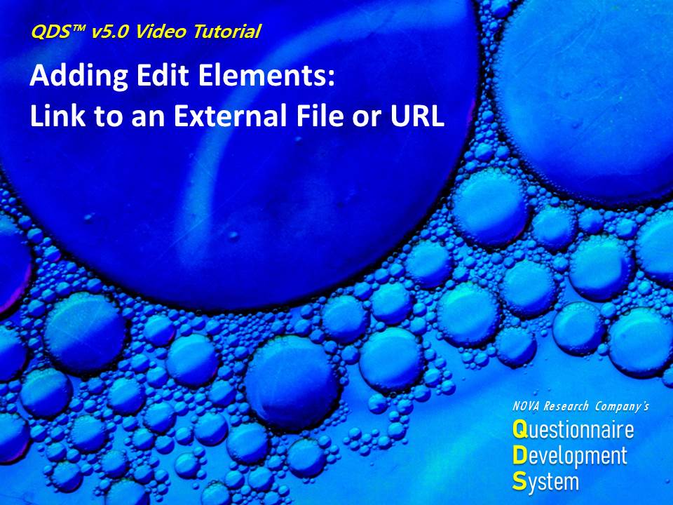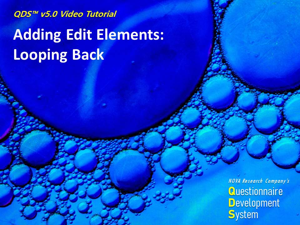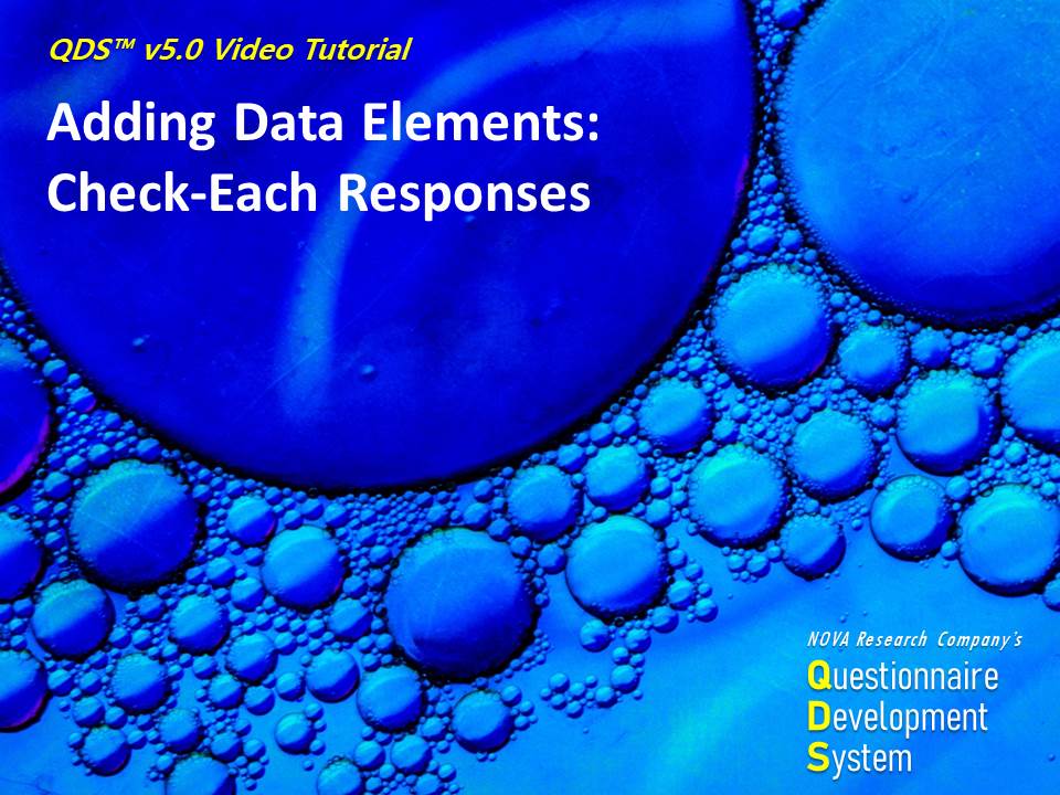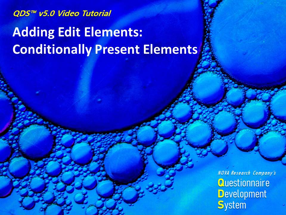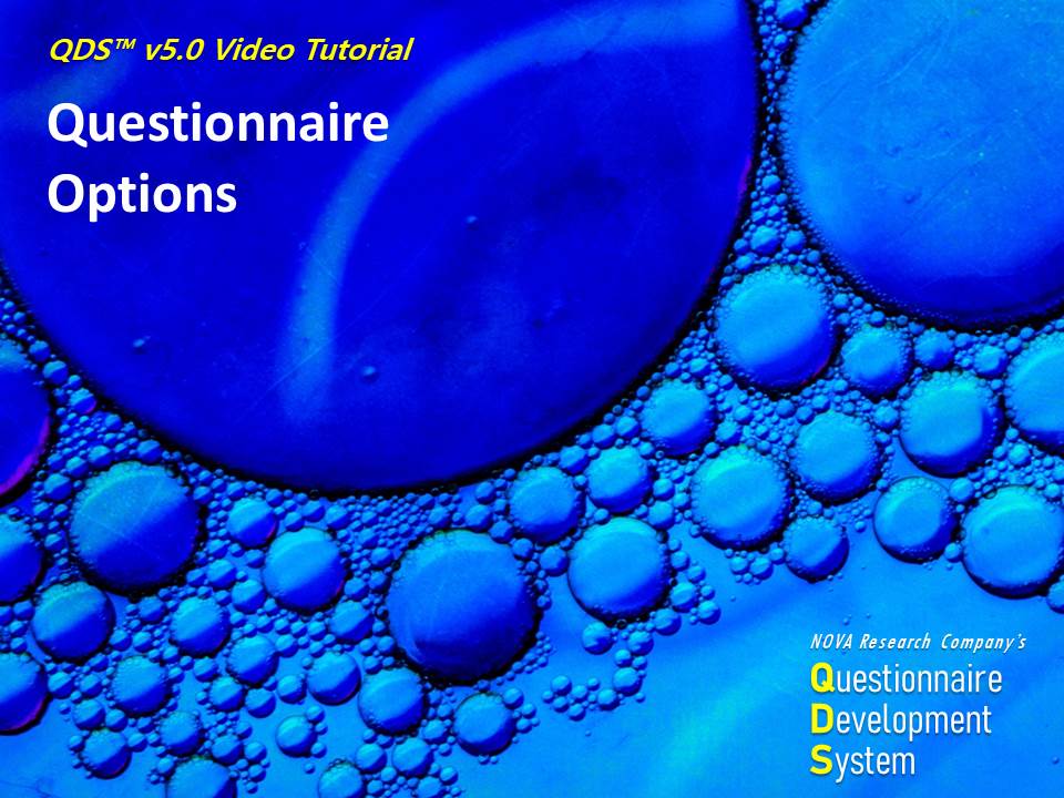 This video is part of a training series on using NOVA Research Company's Questionnaire Development System (QDS™) software for designing and administering a survey. This video demonstrates getting started with QDS and adding a subject identifier in the QDS Design Studio.