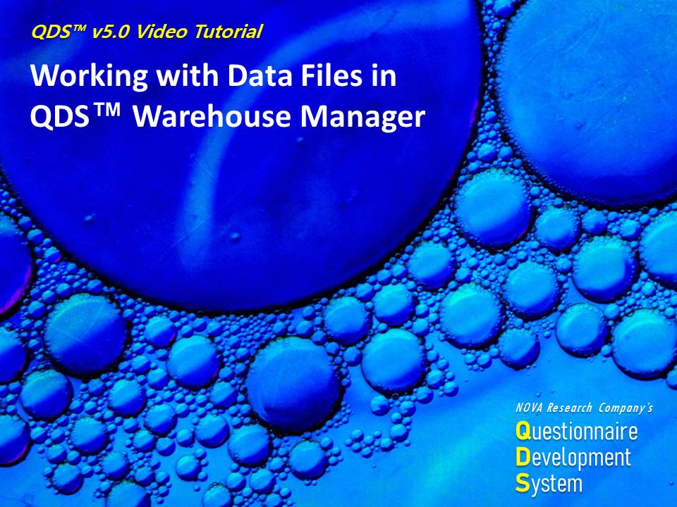 QDS™ Warehouse Manager: Working with QDS-Web™ Data Files and Management