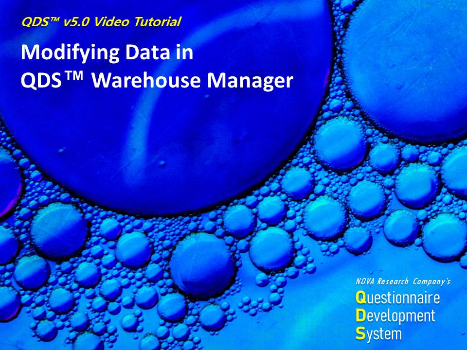 The QDS™ Video Tutorials were developed by NOVA Research Company.