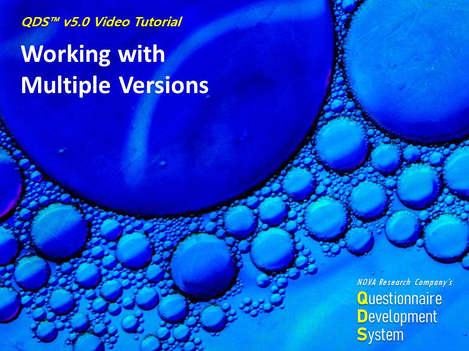 QDS™ Tutorial videos will help guide you through QDS™ Development, questionnaire administration, and data management using step-by-step demonstration to get you started. While these tutorials should be especially beneficial to our newer users, more experienced users may also find some useful tips and tricks.